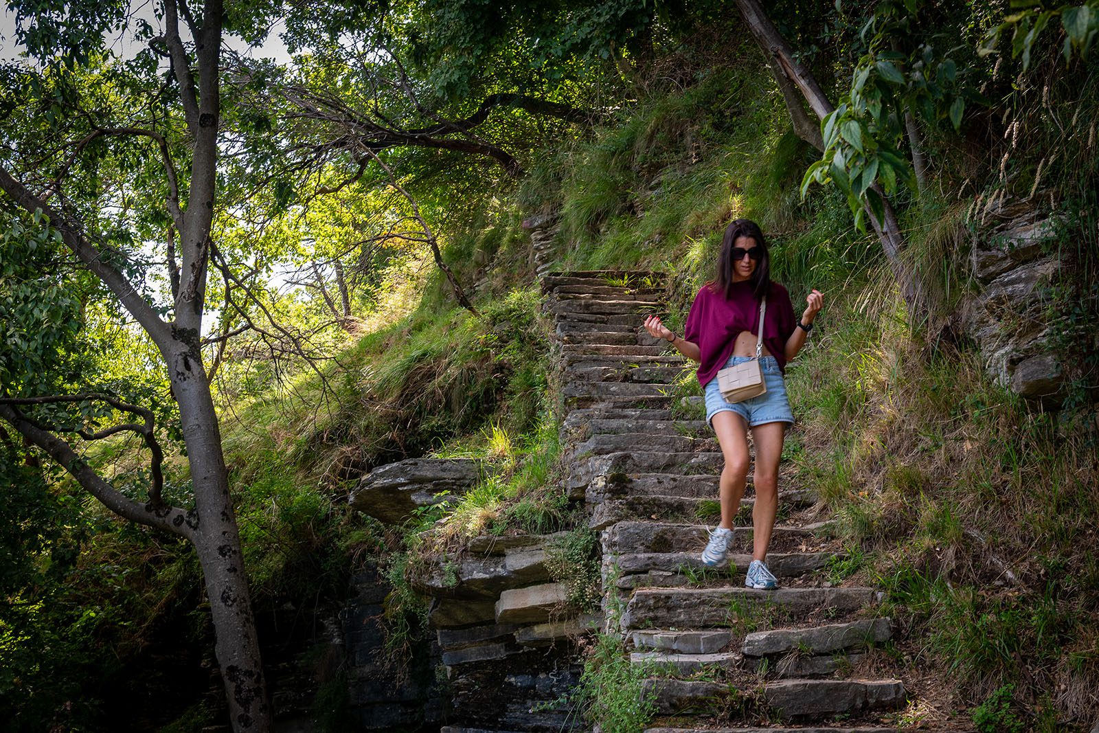 Sentée di Sort is een oude verbindingsweg tussen de dorpen aan de Westelijke oever van het Comomeer op de flanken van de Monte Bisbino. Het pad loopt langs tuinen en doorheen boomgaarden en bossen. Heel af en toe zijn er enkele passages over wat grotere stenen, een wat smallere doorgang maar uitdagend wordt het nooit. Aan de moeilijkere passages hangen er kettingen om je vast te houden. Het pad wordt duidelijk actief onderhouden. Sentée di Sort wordt op sommige websites omschreven als niet aan te raden voor mensen met hoogtevrees maar dat is wat ons sterk overdreven. Laat je dus zeker niet afschrikken!